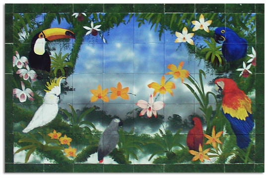 Jungle birds 34" x 52" . Tile size 6" x 6"