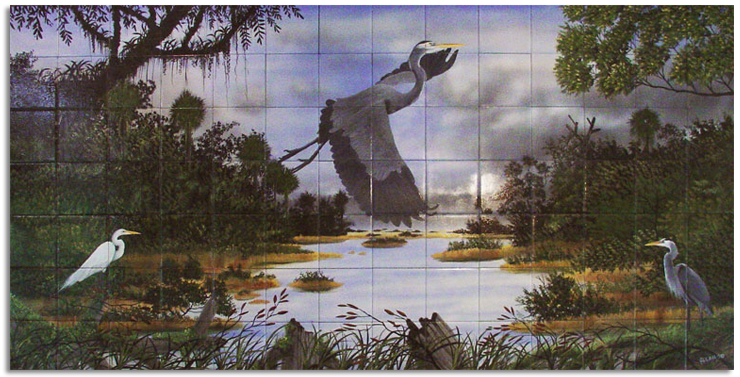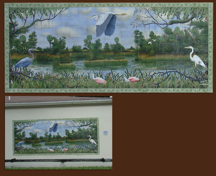 This mural was donated and is at Coral Pine Park "Birds Of The Everglades" 5' x 12' Tile size 6" x 6" - border 3" x 6"